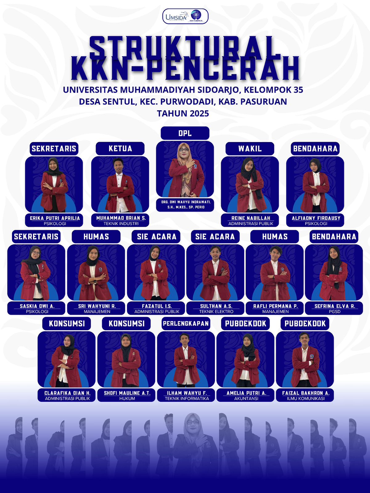 Dosen Pembimbing Lapangan Terbaik KKN 25 UMSIDA Sidoarjo, 2025 – Mahasiswa dan dosen UMSIDA kembali meraih prestasi dalam KKN 25. drg. Dwi Wahyu Indrawati, S.H., M.Kes., Sp.Perio mendapat Penghargaan Dosen