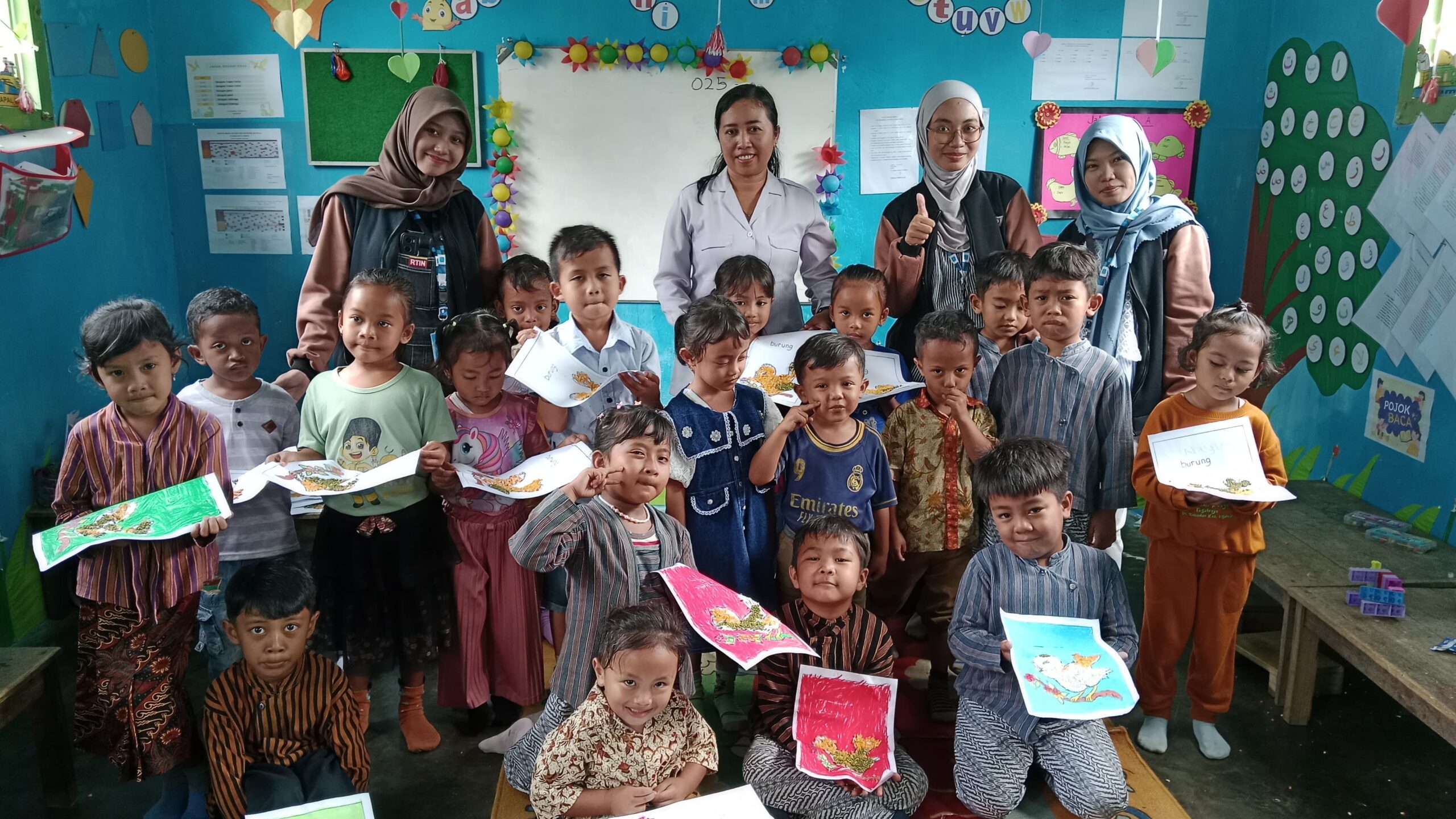 Babadan, Kediri – Mahasiswa KKN-P (Kuliah Kerja Nyata Pencerahan) Kelompok 01 Universitas Muhammadiyah Sidoarjo (Umsida) memperkenalkan kolase bahan alam sebagai metode pembelajaran kreatif di TK Dharma Wanita Babadan 1 &